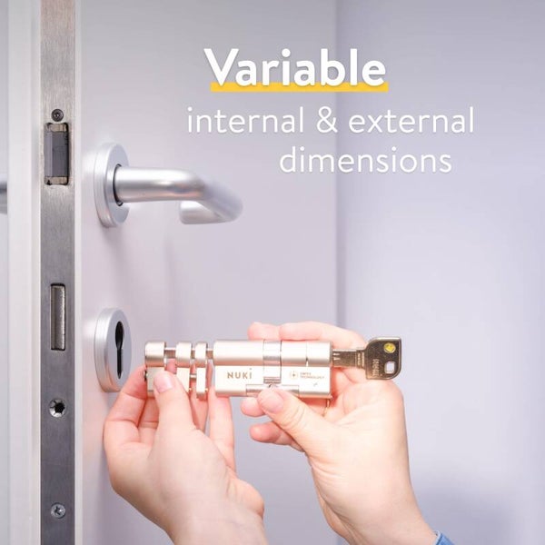 Nuki Evrensel Silindir, Nuki akıllı kilitlerinizi mevcut kapı kilidinize entegre etmenizi sağlayan, modüler yapıya sahip bir kilit silindirdir. Bu silindir, mevcut silindirinizi değiştirmeden, kapınıza uyumlu bir şekilde monte edilebilir.